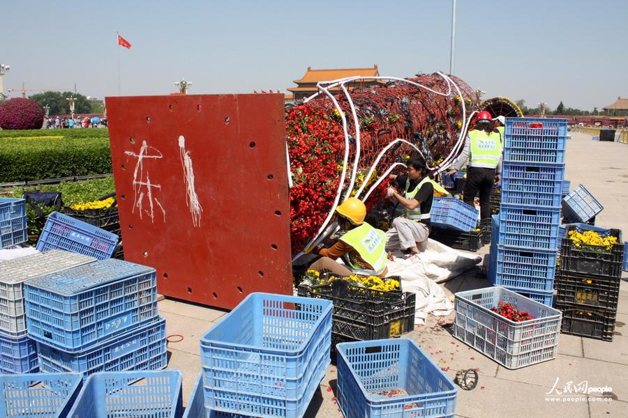 天安门广场 花坛 花柱 海绵材料 五一 花卉 抗日战争 游客 花材 滴灌技术