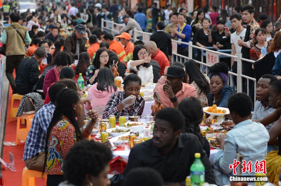 4月24日,2015年第六届杭州拱墅运河美食节在杭州胜利河美食街拉开序幕,中外游客共享运河美食嘉年华。美食节持续至5月3日结束,历时10天,本届美食节活动的主题是“运河南端醉拱墅商旅繁华乐享地”。中新社发 李晨韵 摄