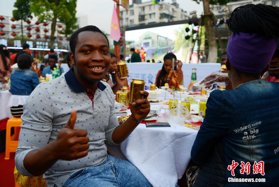 4月24日,2015年第六届杭州拱墅运河美食节在杭州胜利河美食街拉开序幕,中外游客共享运河美食嘉年华。美食节持续至5月3日结束,历时10天,本届美食节活动的主题是“运河南端醉拱墅商旅繁华乐享地”。中新社发 李晨韵 摄