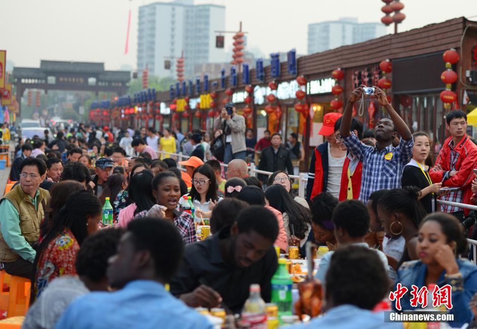 4月24日,2015年第六届杭州拱墅运河美食节在杭州胜利河美食街拉开序幕,中外游客共享运河美食嘉年华。美食节持续至5月3日结束,历时10天,本届美食节活动的主题是“运河南端醉拱墅商旅繁华乐享地”。中新社发 李晨韵 摄