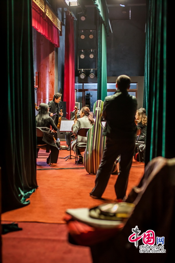 国际小提琴演奏家吕思清与国家大剧院管弦乐团的年轻演奏家们在演出前早早来到演出场地进行排练,尽管演出条件简陋,但是他们依旧一丝不苟的对待。中国网记者郑亮摄影