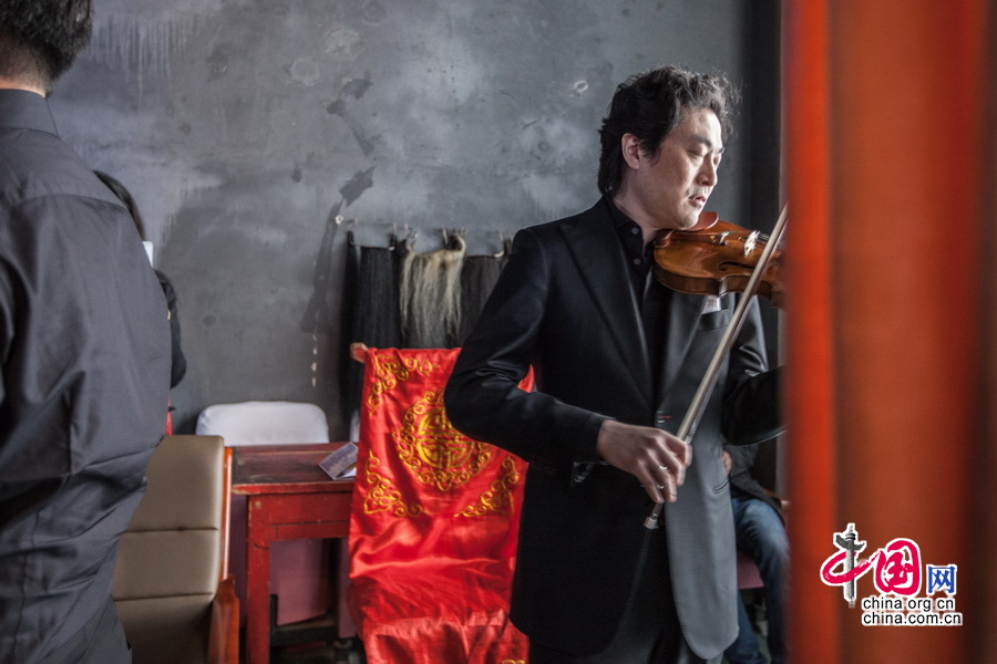 即便是在后台准备上场的这短短几分钟,吕思清还是在一遍遍的练习着准备演奏的曲目。 中国网记者 郑亮摄影
