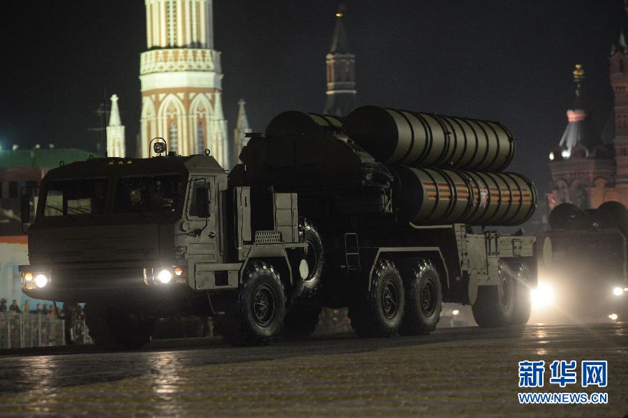 4月29日,在俄罗斯首都莫斯科,S-400导弹车参加彩排。当日,俄罗斯首都莫斯科为5月9日红场阅兵举行彩排。新华社发(别德尼亚科夫摄)
