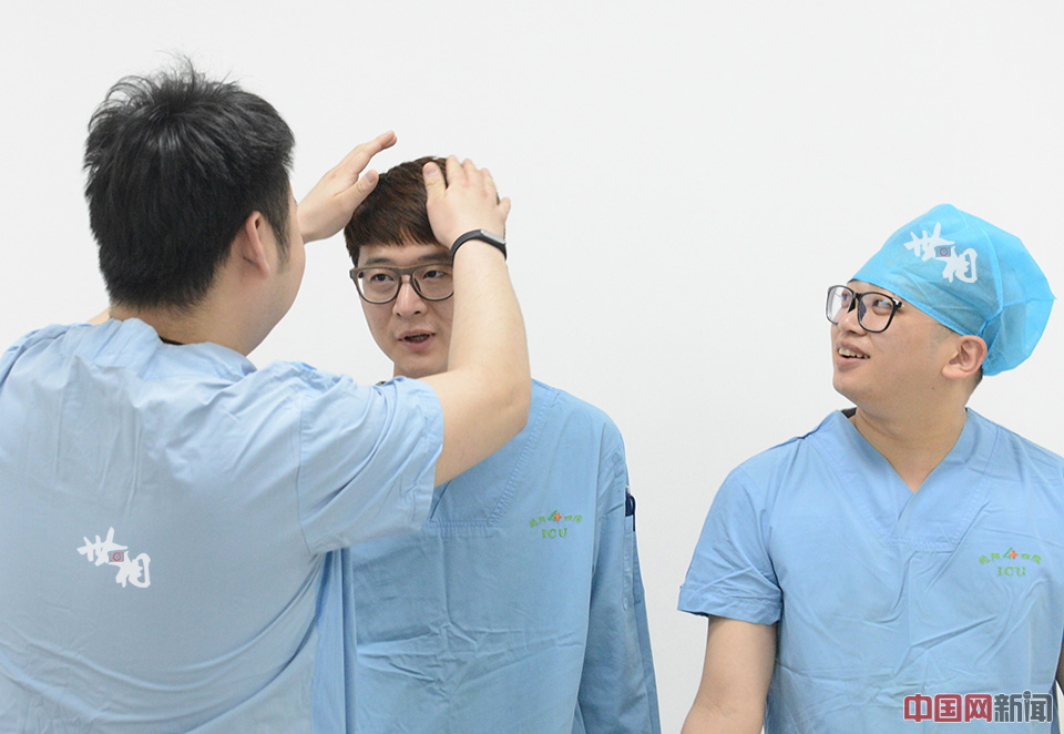 男护士们在闲暇时偶尔也会显露出调皮的一面。