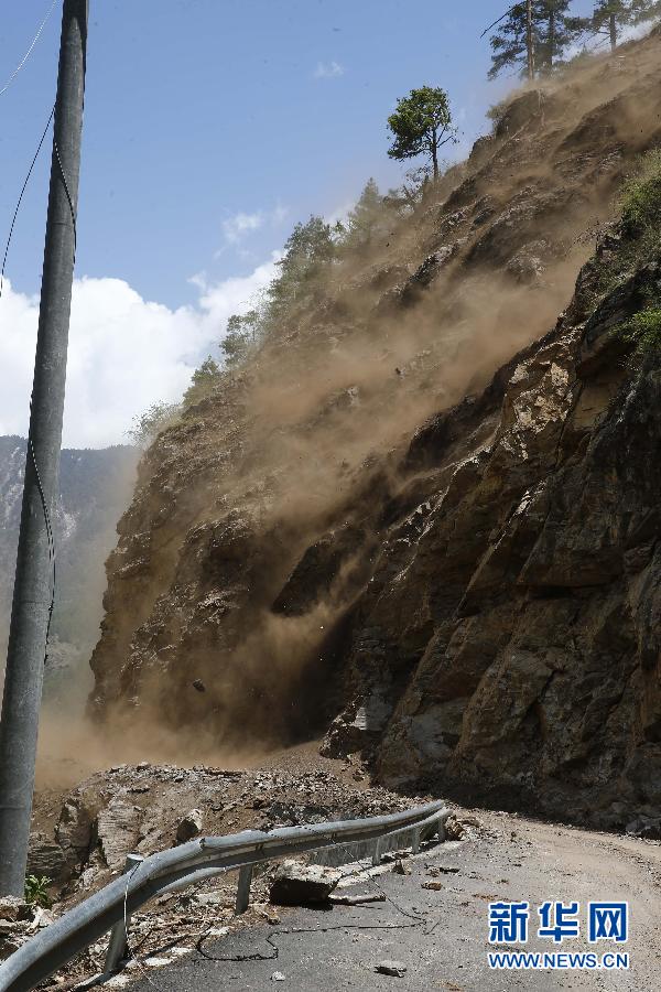 5月12日,强震前吉隆口岸附近发生山体滑坡,吉隆至吉隆口岸道路阻断。当日15时5分许,尼泊尔再次发生7.5级强震,我边境受灾地区震感强烈,西藏多地有明显震感。新华社记者殷刚摄图片来源:新华网