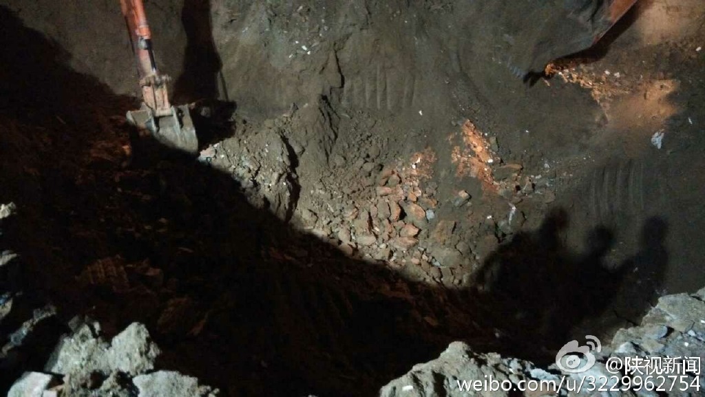 晚上10:15分,现场已经调派了七辆挖掘机,谨慎中加速挖掘,准备从侧面挖出来的大坑打横洞救孩子!