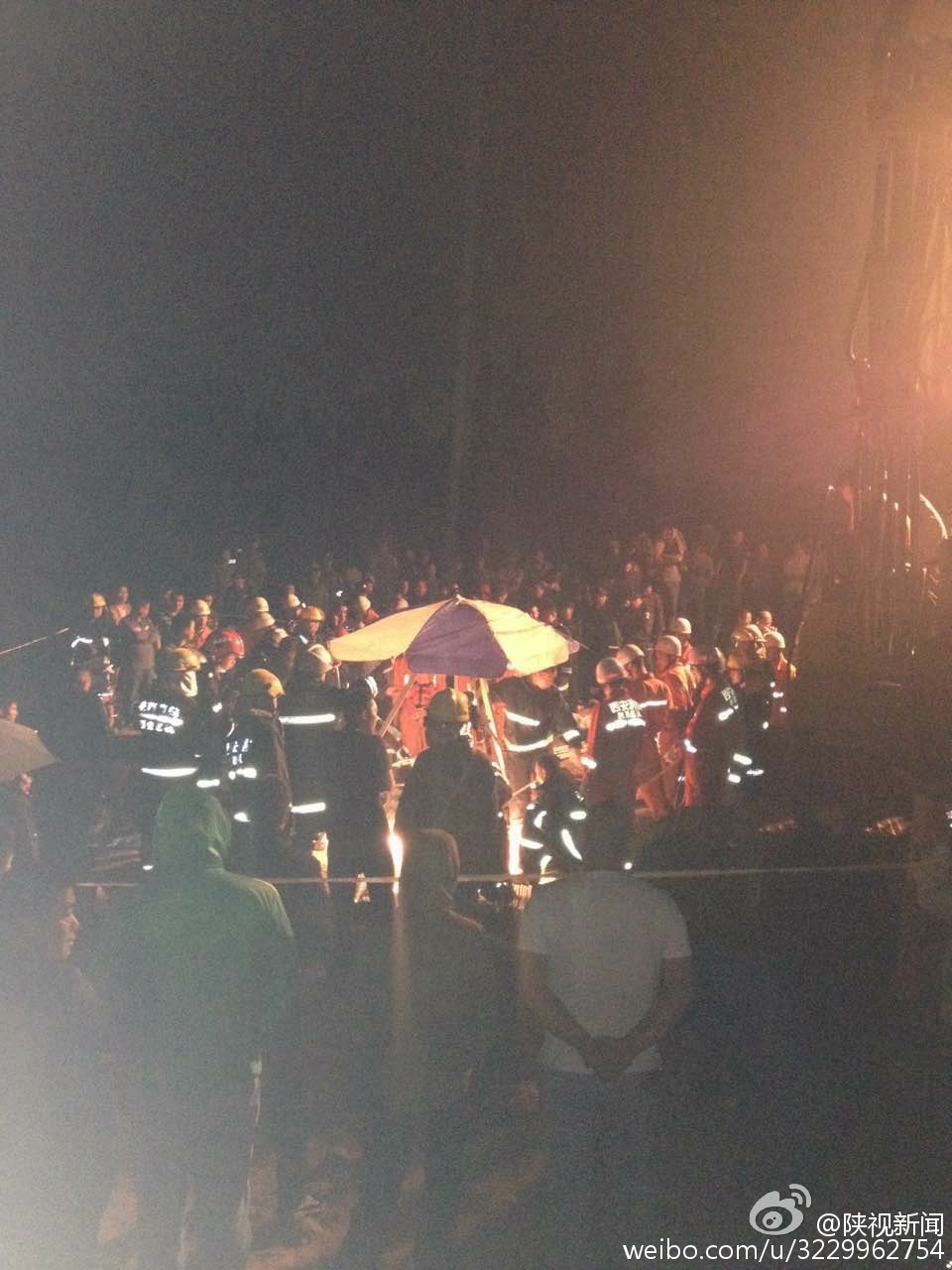04:40现场下起了雨,这对救援无疑形成干扰,有村民送来了伞遮住井口。雨下大了,刚刚下去救援的消防战士上来了,换了人下去。上来的消防战士说,下面有土,有石头,给挖掘也造成很大困难。刚才又进行了第二次钻井,因为横向挖掘了一段距离,土把救援的坑垫高了,所以这会只能用机器把土清理出来,战士才能下去继续横向挖掘。这是最后的挖掘了。