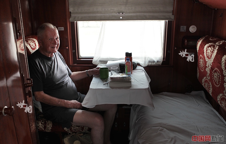 来自美国俄勒冈州的老人Willard Miller 悠然的坐在包厢内,一杯咖啡,一本书,眺望窗外的风景,悠然而惬意。85岁的老人用英文慢慢说道,他要周游世界。