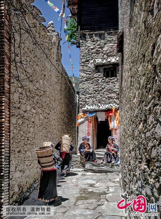 古时,色尔古人为抵御外族的侵犯,多群居,由此形成了独特的藏式民居。藏寨依山脊修建,居高临下,为碉楼式,用片石和黄泥调浆砌墙,一般为三层。户间小巷,片石镶嵌,阶梯密布,纵横交错,初临其中,如进八卦,多要往返。中国网图片库刘国兴 摄