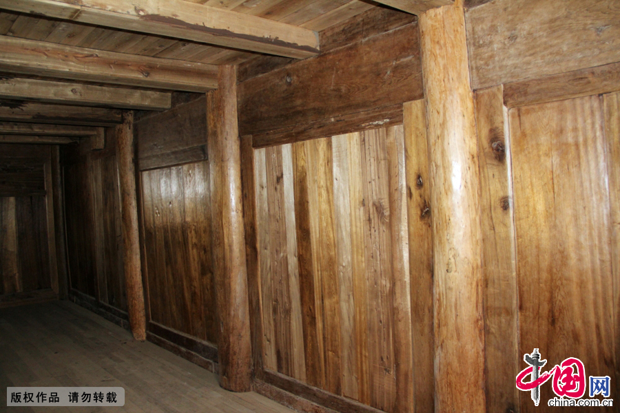 湖北恩施林博园内金丝楠木民居内的木料。(7月14日摄) 中国网图片库谢顺摄影