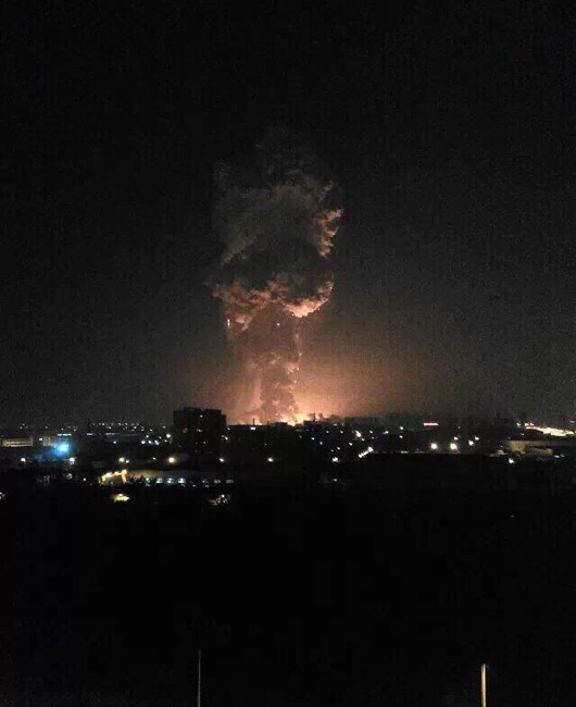 多段现场视频显示,现场火光冲天,在强烈爆炸声后,高数十米的灰白色蘑菇云瞬间腾起。随后爆炸点上空被火光染红,现场附近火焰四溅。记者检索发现,目前天津开发区事发地附近街道上遍地碎屑,画面中有男子浑身带血,赤裸上身互相搀扶,正在远离爆炸地带。