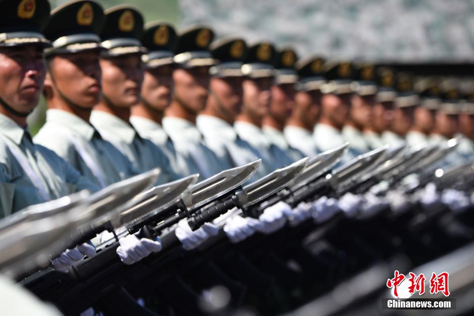 8月22日,阅兵徒步方阵正在紧张训练。当日,位于北京昌平的阅兵训练基地接受境内外媒体采访拍摄。近50家境内外媒体90余人来到基地采访。