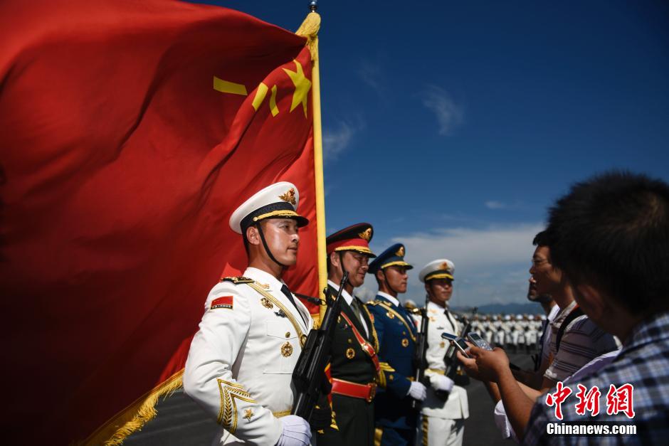 8月22日,记者采访阅兵旗手。当日,位于北京昌平的阅兵训练基地接受境内外媒体采访拍摄。近50家境内外媒体90余人来到基地采访。