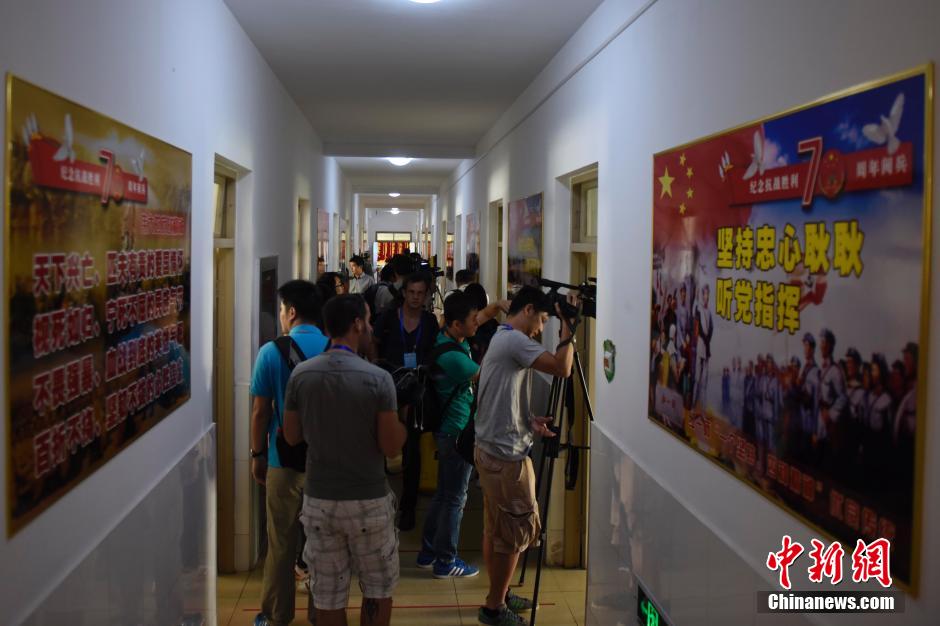8月22日,记者到阅兵战士宿舍参观。当日,位于北京昌平的阅兵训练基地接受境内外媒体采访拍摄。近50家境内外媒体90余人来到基地采访。