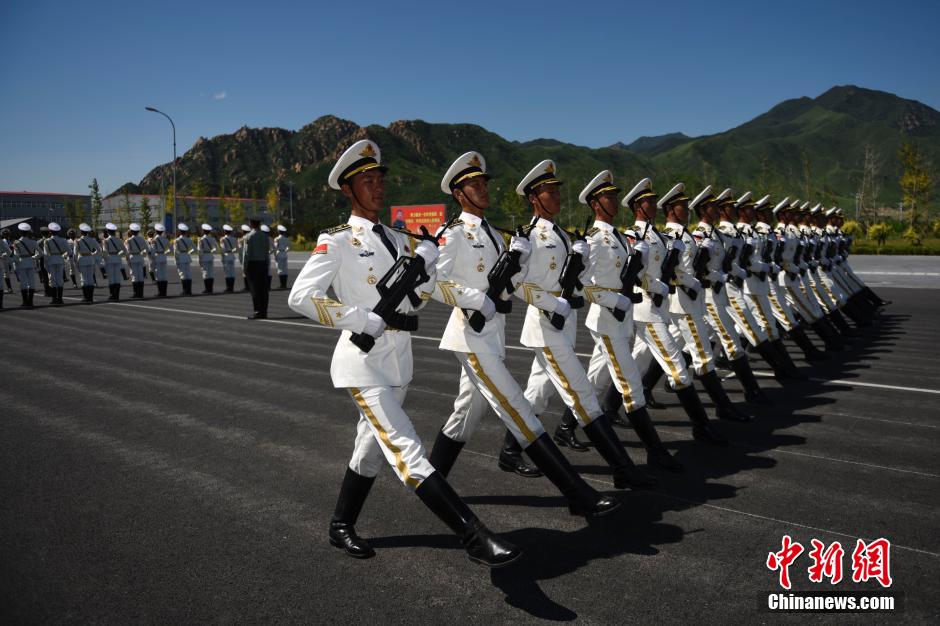 8月22日,阅兵徒步方阵正在紧张训练。当日,位于北京昌平的阅兵训练基地接受境内外媒体采访拍摄。近50家境内外媒体90余人来到基地采访。