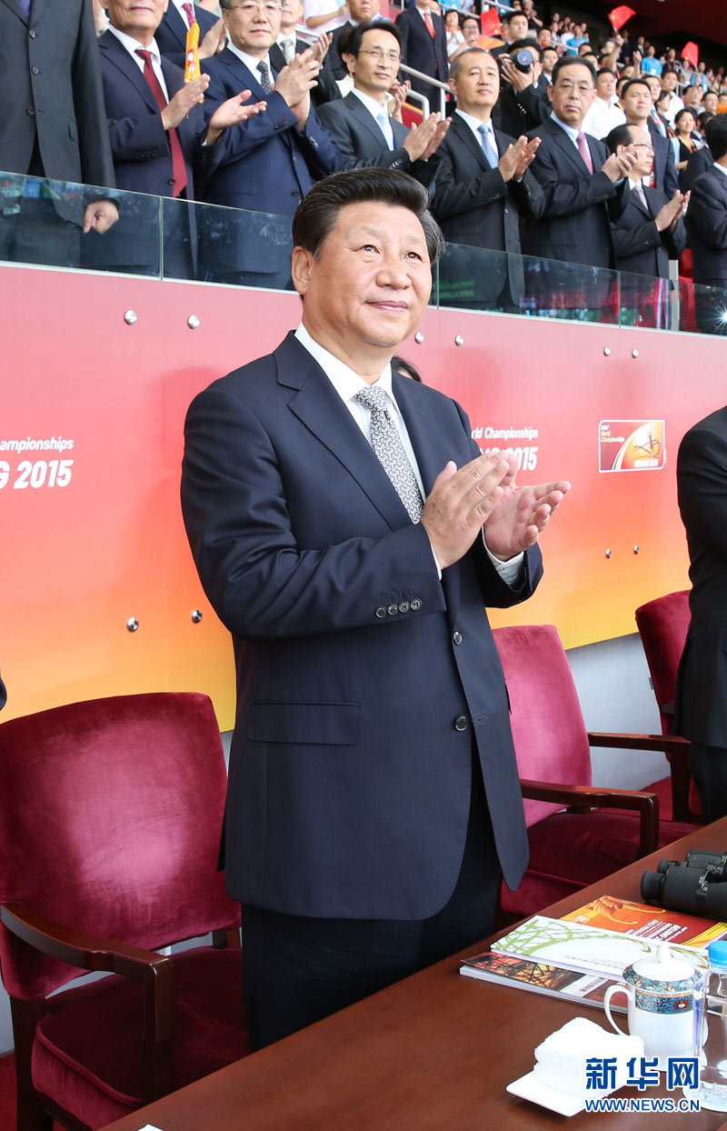 8月22日,国家主席习近平在国家体育场出席2015年北京国际田联世界田径锦标赛开幕式并宣布锦标赛开幕。 新华社记者 黄敬文 摄
