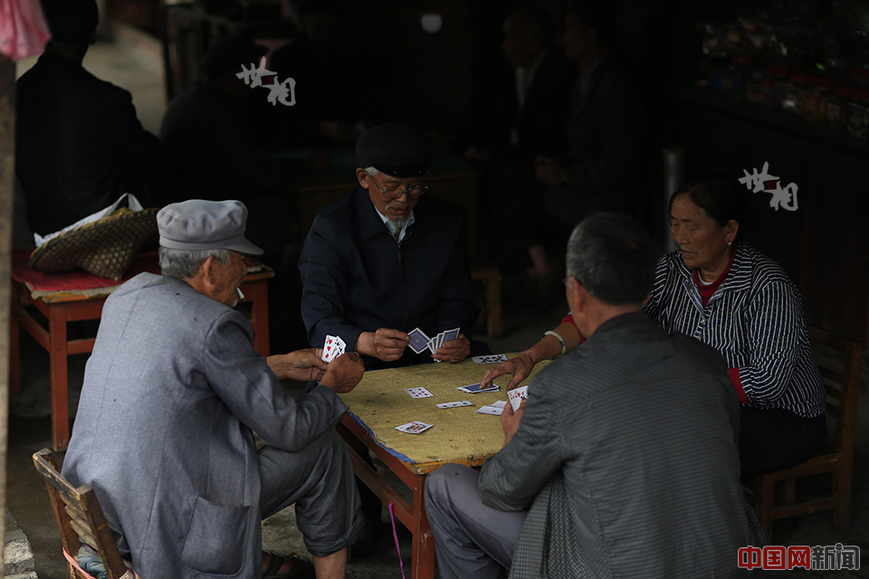 下午,李会映老人会走到村里的小卖店和邻居们玩一会扑克。