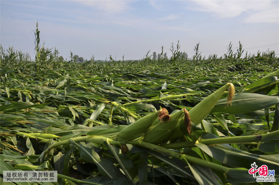 2015年8月23日,万古镇部分村庄的玉米连片倒地,如被石磙碾压过,看着让人十分心痛。中国网图片库 作者:孙渺海