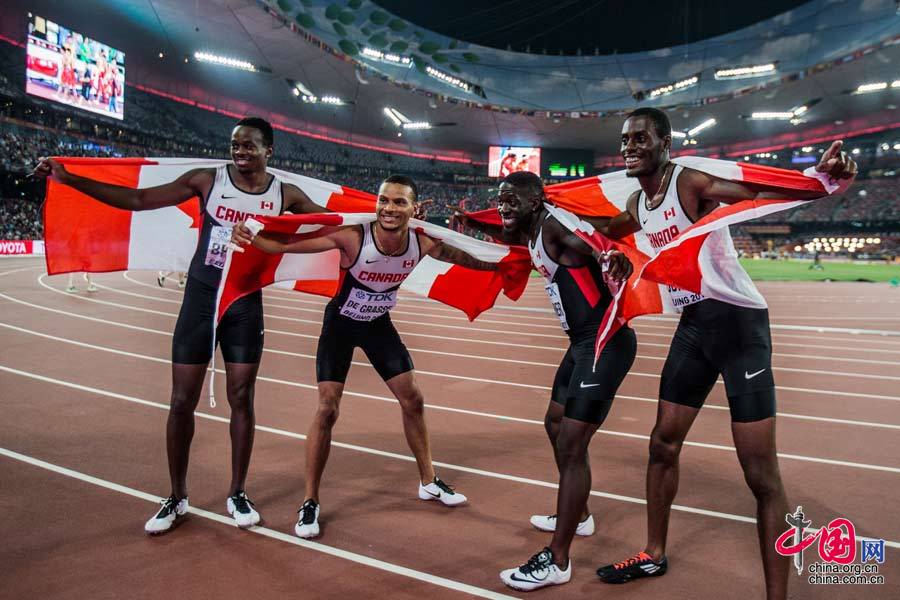 中国队以38秒01的成绩获得2015年国际田径锦标赛男子4X100米接力决赛银牌,图为比赛现场。 中国网记者 郑亮摄影