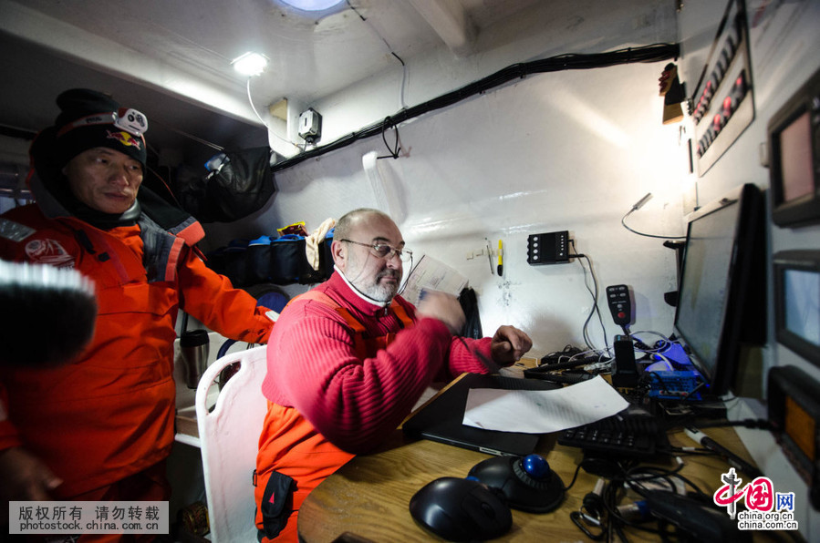 北京时间9月16日凌晨零点48分24秒,郭川船长亲自掌舵,率领五名国际船员驾驶“中国·青岛”号冲过了世界帆船速度记录委员会在白令海峡设置的终点线,一个新世界纪录诞生了。(中国网图片库摄影/陈志伟)