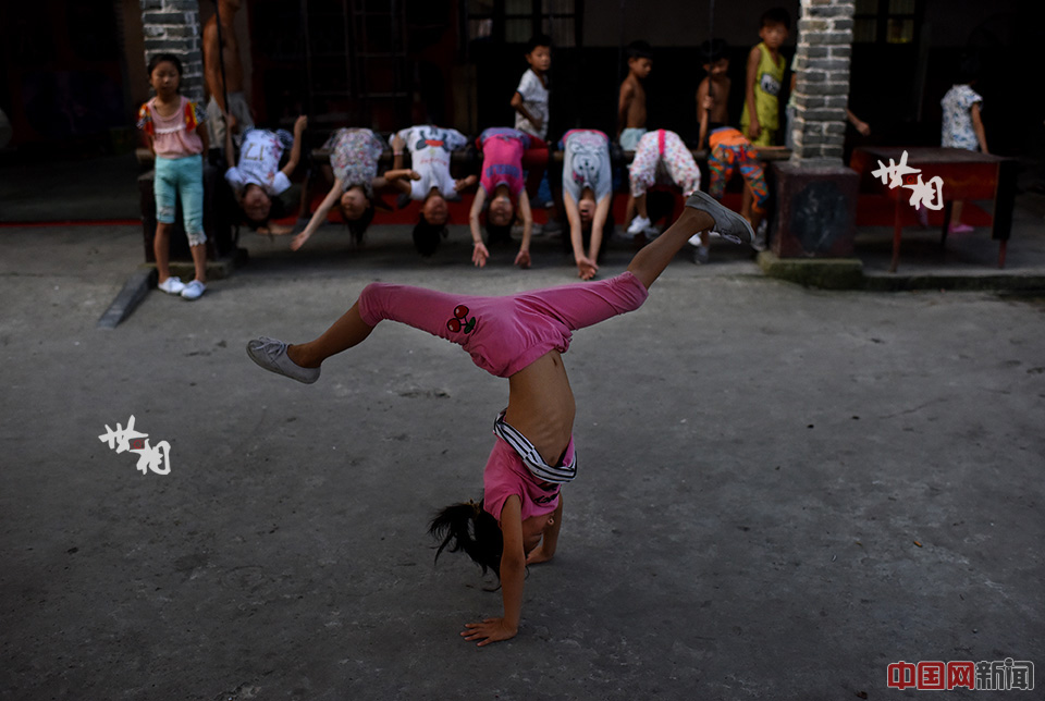 早晨,做过基本功训练后,刘悦开始练习翻跟头,这样翻来翻去一天要做好几百个。这次过来已经一个多月了,每天除了压腿下腰外,主要练习翻跟头和软功。刘悦说她的爸爸妈妈都是从事杂技表演,还有两个哥哥也学过杂技,全家组建了一个杂技班四处演出。刘悦说她并不喜欢杂技,“因为累,早晨太早了。”当然,她因为练习杂技哭过很多次鼻子,但是她只能乖乖地练。