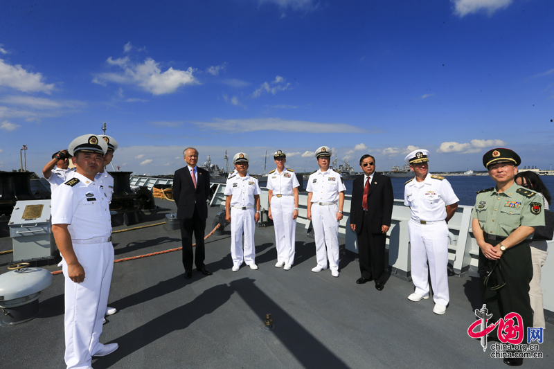 参加欢迎仪式中美人员参观济南舰 代宗锋摄