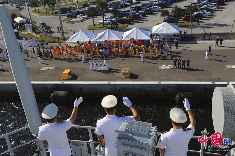 中国海军 舰艇编队 美海军 两栖攻击舰 欢迎仪式 海军官兵