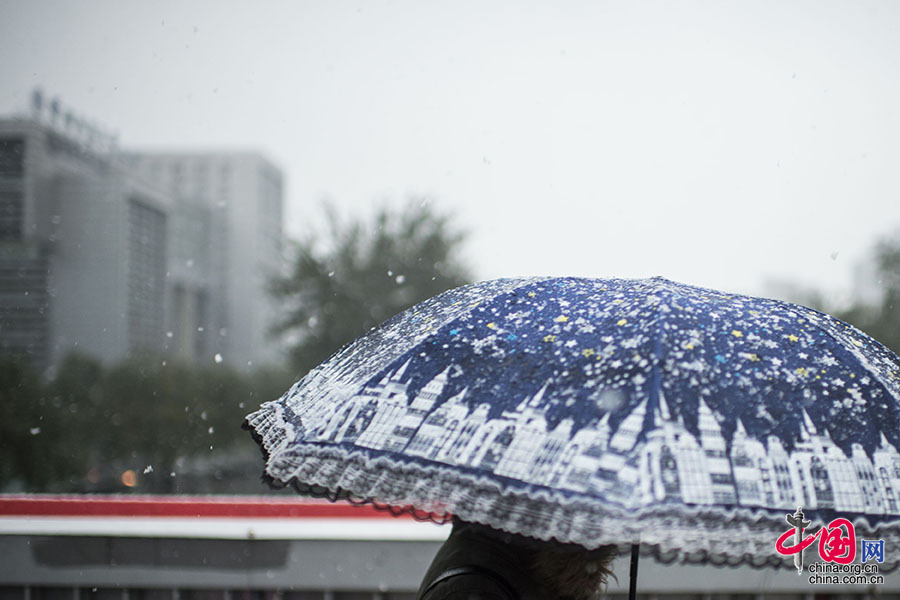 11月6日清晨,北京市民雪中出行。 中国网记者 牛博摄
