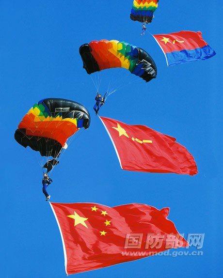 惊险绚丽!八一跳伞队秀“蓝天舞步”