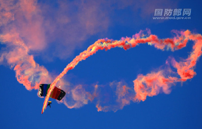惊险绚丽!八一跳伞队秀“蓝天舞步”