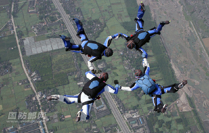 惊险绚丽!八一跳伞队秀“蓝天舞步”