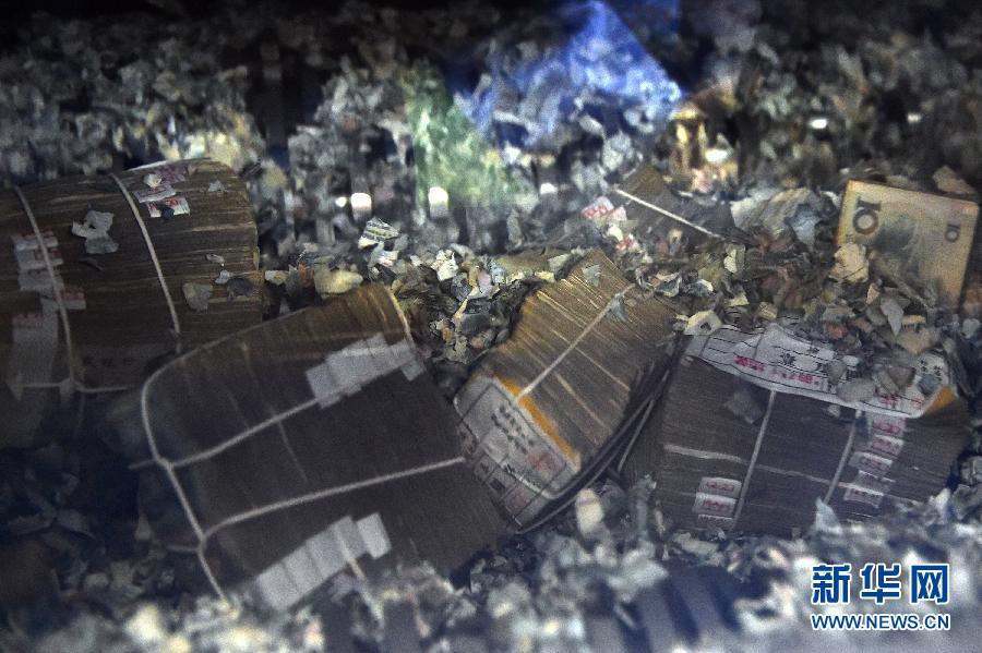 在南京钞票处理中心,10元旧钞被机器粉碎(11月4日摄)。新华社记者 李鑫 摄 图片来源:新华网