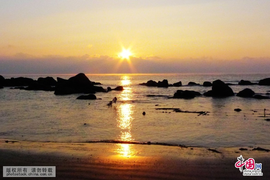 今冬首场雪后 青岛海滨迎炫美日出(组图)