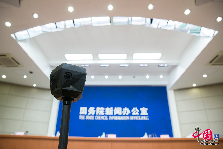 12月9日上午,一台全景视频采集设备出现在国新办第二届世界互联网大会新闻发布会会场。 中国网记者 张若梦 摄