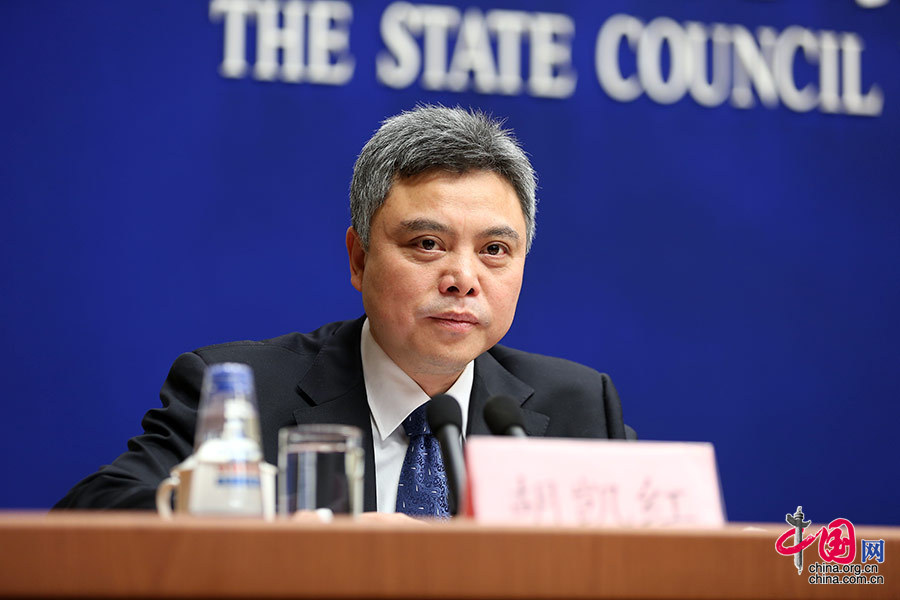 2015年12月10日上午,国务院新闻办举行新闻发布会,介绍京津冀协同发展有关情况。图为发布会主持人国务院新闻办公室新闻发言人胡凯红。中国网 郑亮 摄影