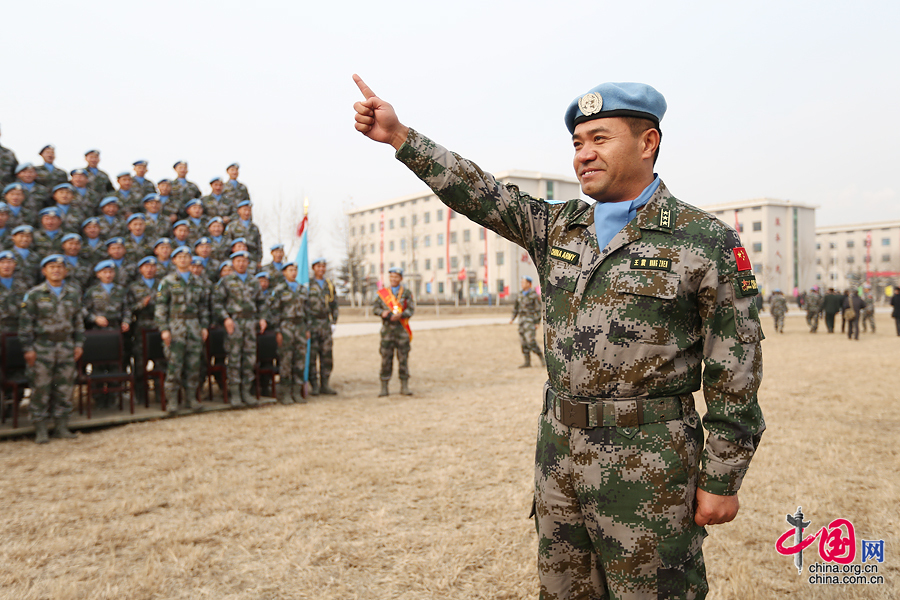 1月4日上午10时,第一批赴南苏丹(朱巴)维和步兵营授称命名暨总结表彰大会在陆军第26集团军某旅礼堂隆重举行。图为维和步兵营营长王震在部队解散前做最后指示。中国网 郑亮 摄影