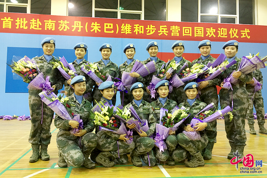 结束维和任务凯旋回国的女兵班战士。孙江超摄