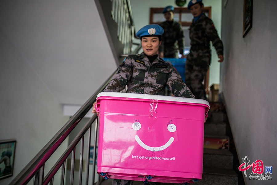 女兵班的战士整理自己的行李,准备离开步兵营回到自己所在部队。郑亮摄