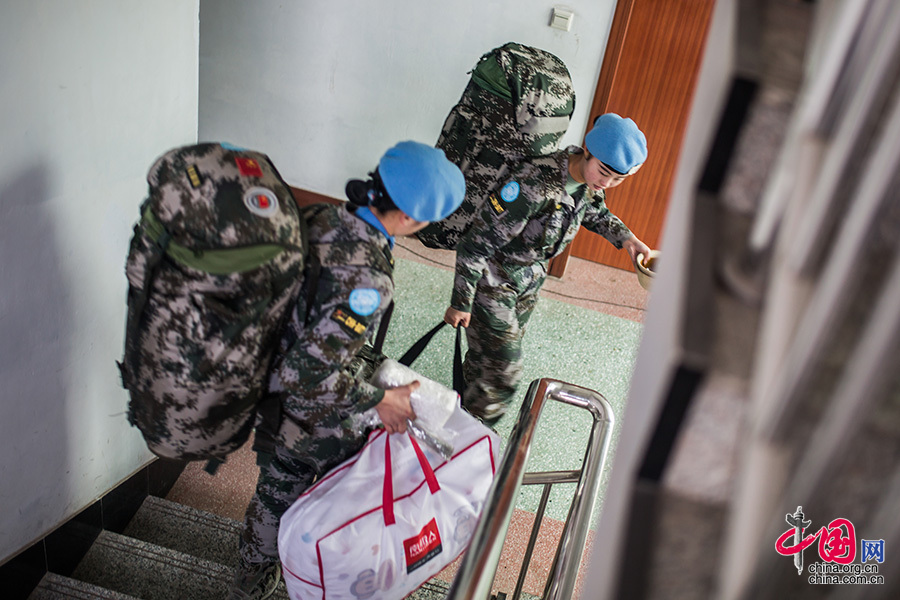 女兵班的战士整理自己的行李,准备离开步兵营回到自己所在部队。郑亮摄