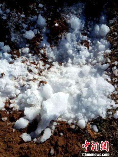 图为降落的冰块将地上砸出一个大坑。 彭杰 摄