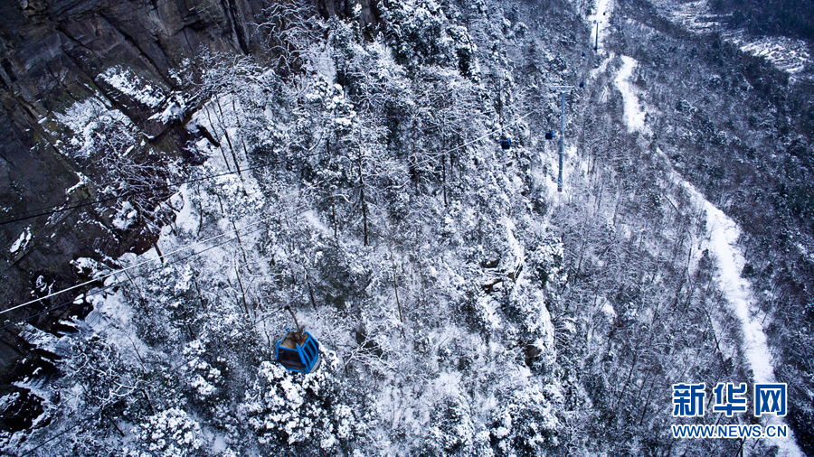 1月25日,重庆市金佛山,在冰雪覆盖的原始森林中乘坐缆车,是许多重庆人都未曾有过的体验。新华网 黄俊辉摄 飞手 向进