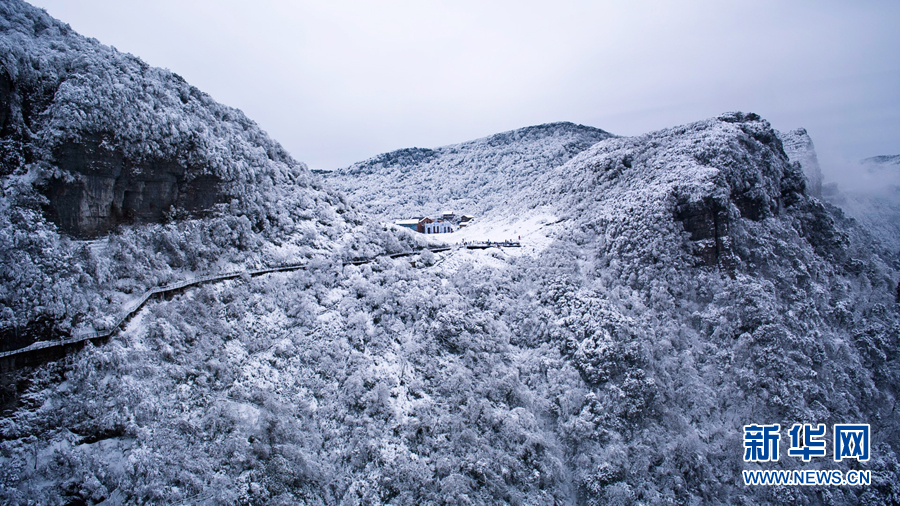 1月25日,重庆市金佛山,被大雪包裹住的金佛山犹如童话世界中描绘的一般澄净美丽。新华网 黄俊辉摄 飞手 向进