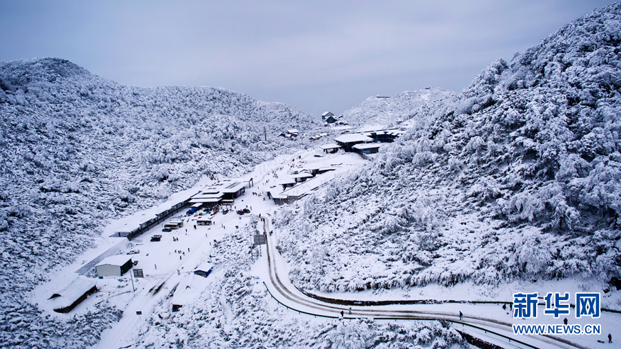1月25日,重庆市金佛山,金佛山的美丽雪景吸引了大量的游客前往游玩观赏。新华网 黄俊辉摄 飞手 向进