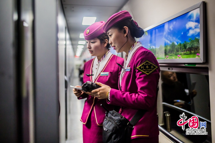 列车长与乘务员在巡视检票,并为需要补票的乘客进行补票,使乘客可以顺利到达目的地。中国网记者 郑亮摄影