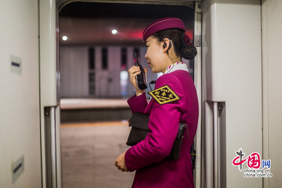 列车长在检完毕后发出关闭车门的指令,车门关闭的瞬间旅途也将开始。中国网记者 郑亮摄影