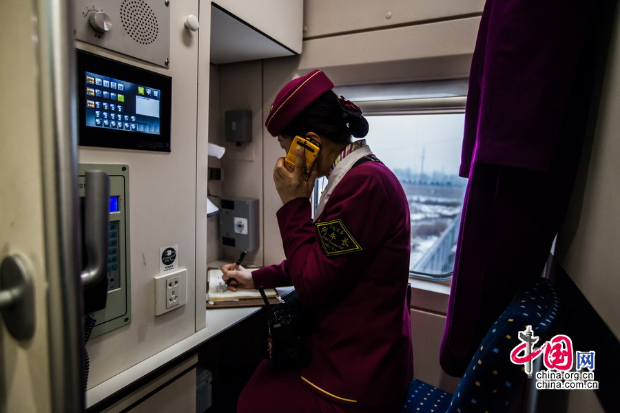 列车开动后列车长会随时与前方即将到达的站车联系,保证车辆供给。中国网记者 郑亮摄影