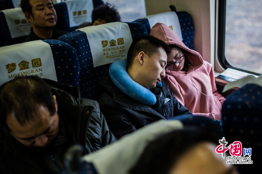 漫长的回家路,那些熟睡的乘客或许正在梦中品尝着妈妈饭菜的味道。中国网记者 郑亮摄影