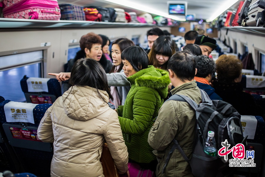 中途上车的乘客正在寻找自己的座位。中国网记者 郑亮摄影