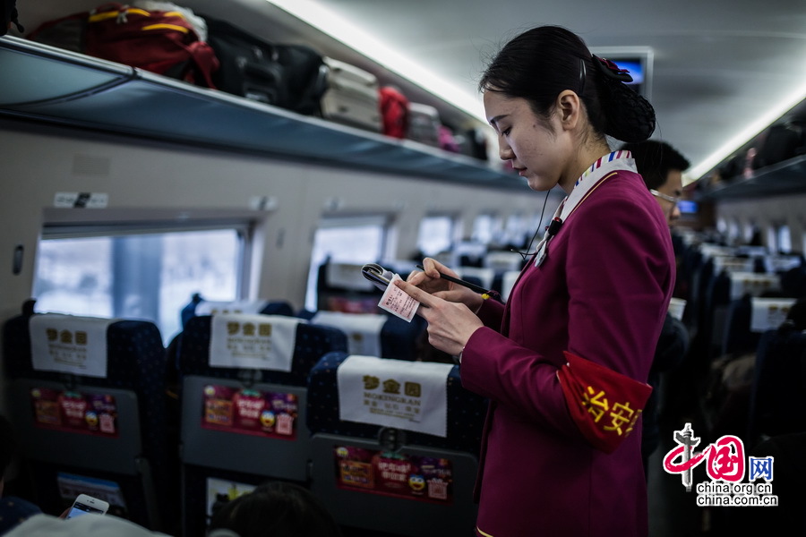 列车开动后乘务员开始查票。中国网记者 郑亮摄影