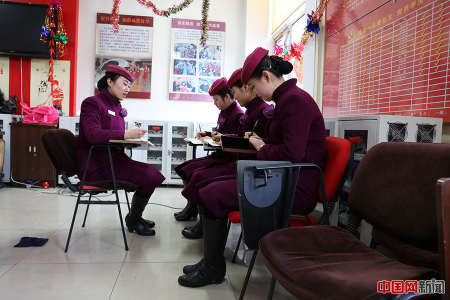 2016年2月4日早8时,北京铁路局高铁一队第四乘包组“Lily team”开会布置工作。中国网 王梦泽 摄